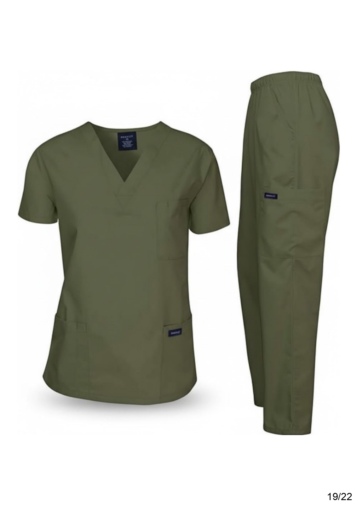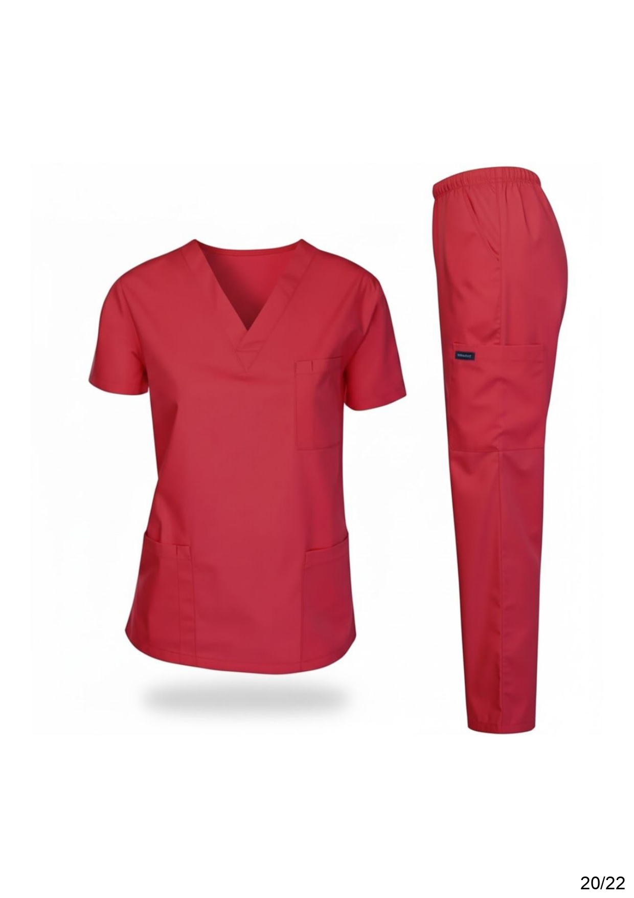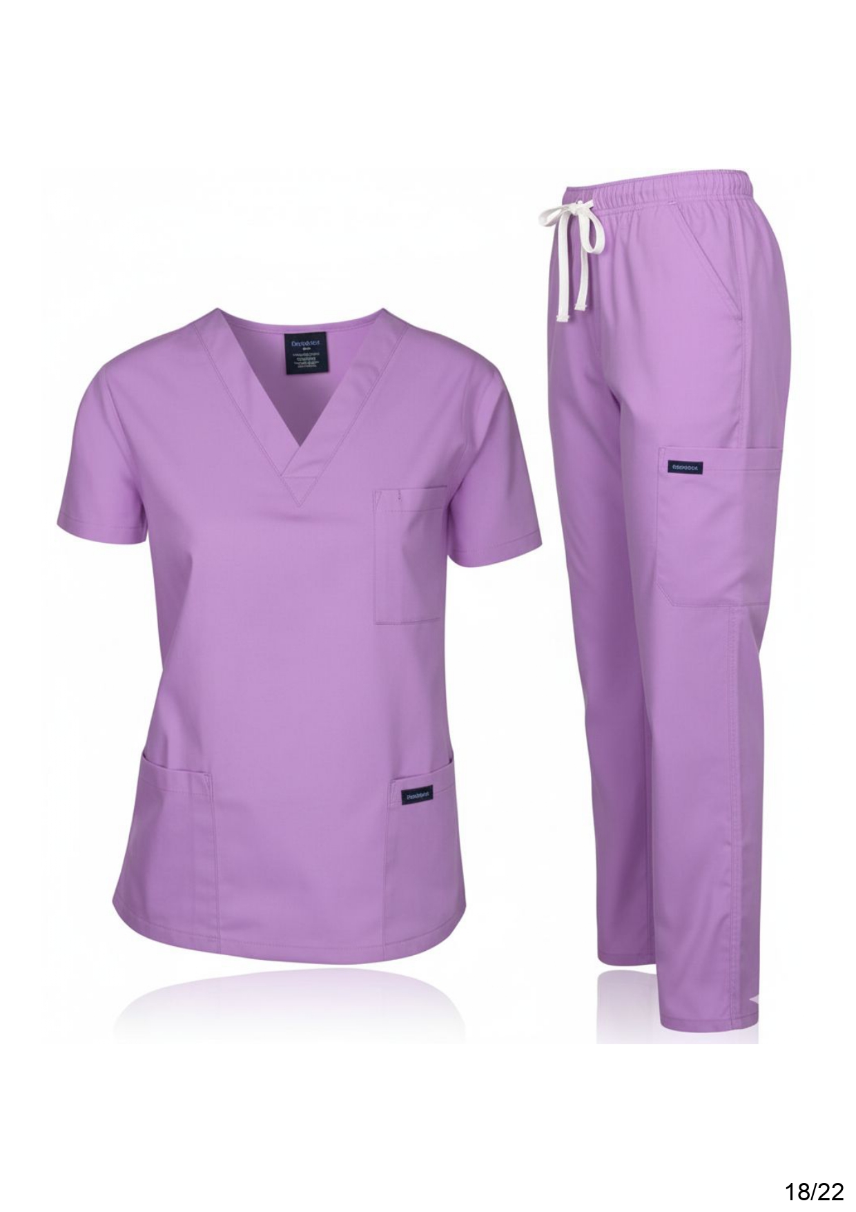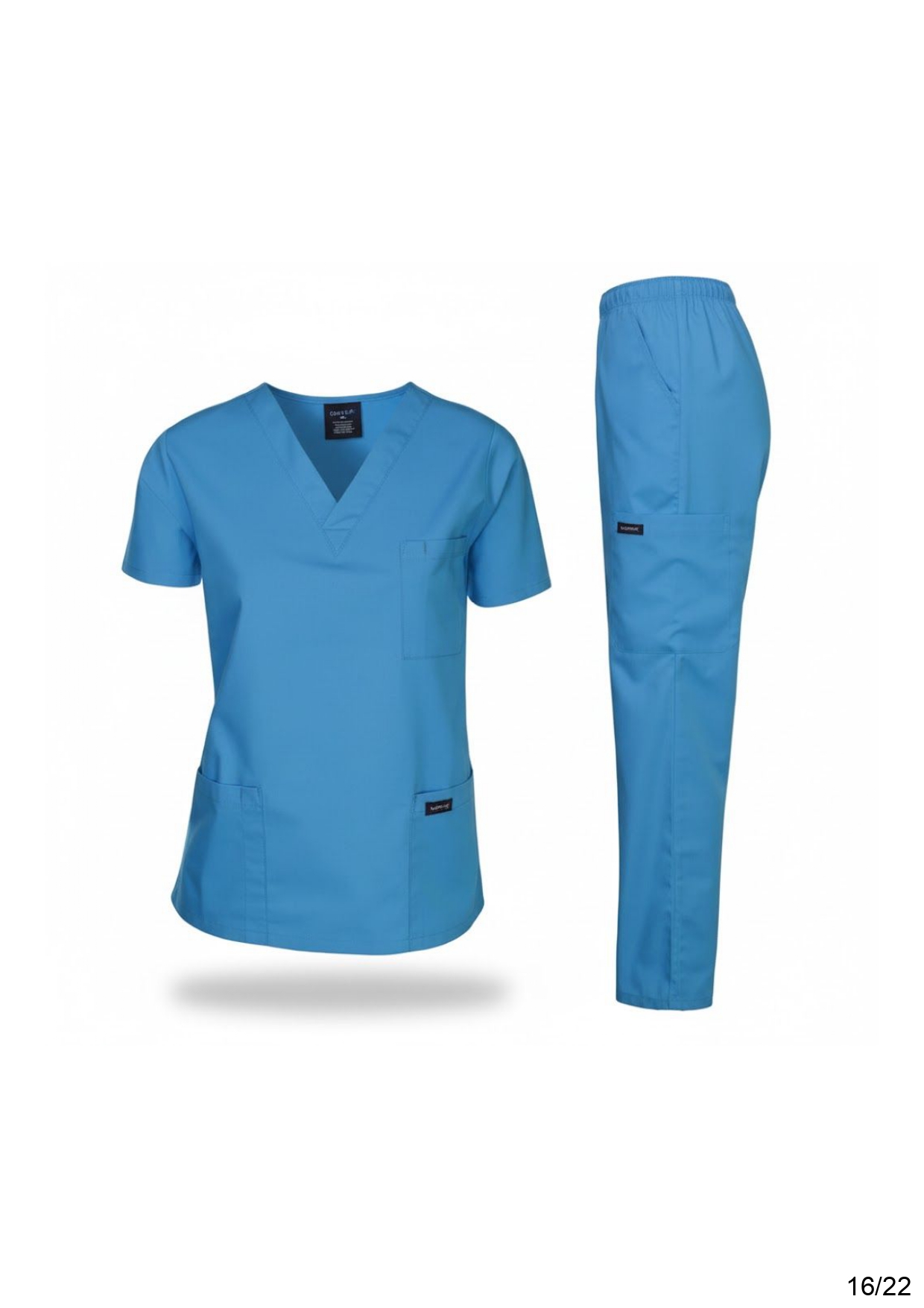 • Fabrique : Le tissu est un mélange technique extensible (souvent du Spandex/Élasthanne avec du Polyester et de la Rayonne). Ce type de fabrique est essentiel pour le personnel médical car il permet une grande liberté de mouvement, résiste aux taches, et supporte les lavages à haute température pour la désinfection. L’aspect est lisse et mat.